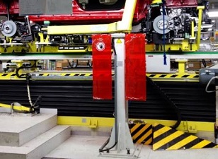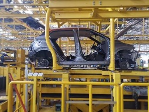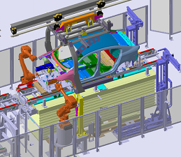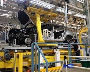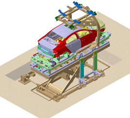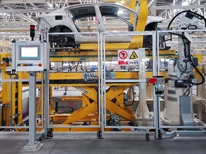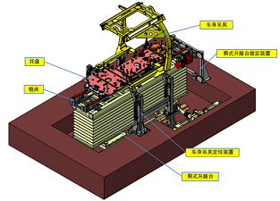 裝配完畢的底盤件由合裝托盤通過輸送系統(tǒng)輸送至合裝站,然后在此處完成與車身合裝。