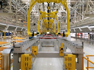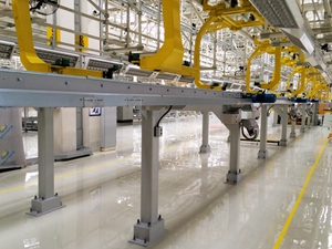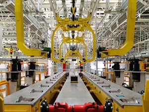 該工廠的生產(chǎn)節(jié)拍為30JPH,是沃爾沃在中國的第二個工廠,主要用以生產(chǎn)S90、XC90車型。合裝工位采用整體浮動的半自動合裝,合裝線輸送設(shè)備采用雙邊驅(qū)動的重型滾床,電機第一次選擇Nord品牌。該工廠合裝托盤在成都工廠合裝托盤基礎(chǔ)上進行了局部更新設(shè)計,該設(shè)計全部有博銳提供。