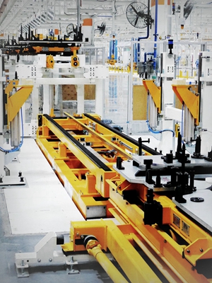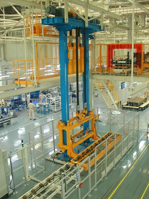 ? POM線(底盤分裝線)輸送板鏈、合裝線輸送系統(tǒng)、滿載/空載托盤空載緩存輸送線及重載升降機等;